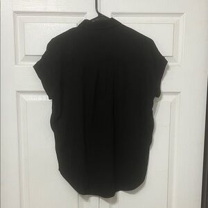 Chic black button-down with short sleeves. Perfect for versatile styling.