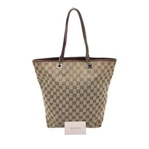 Auth Gucci GG Beige Canvas Leather 31243 Tote Bag