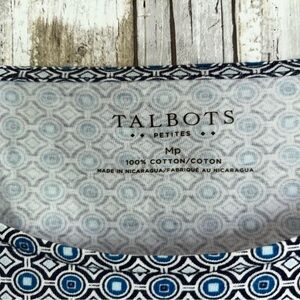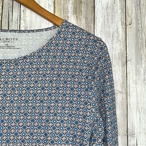 Elevate your wardrobe with this stylish blue patterned top from Talbots. Perfect for any occasion, this top offers both comfort and elegance.