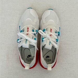 White Nike sneakers with bold red and blue details. Previously worn and in excellent condition.
