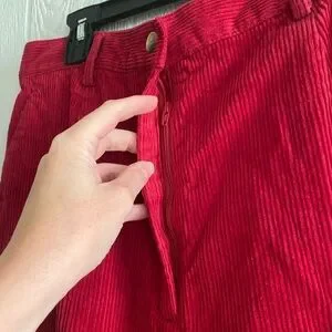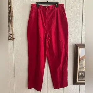 Vintage 80s/90s Women Charter Club Hi-Rise Red Ribbed Corduroy Pleated Pants 12
