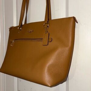 Coach City Zip Pebbled Leather Tote Bag Saddle Brown Gold Hardware