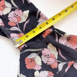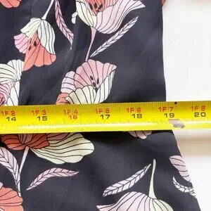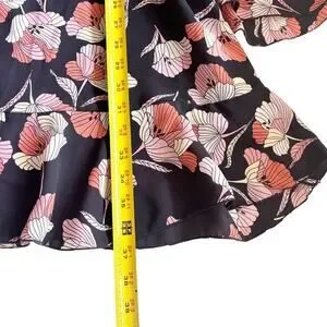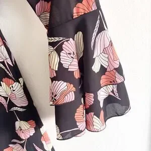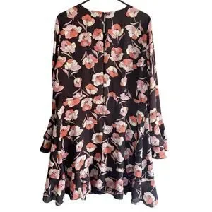 Who What Wear Dress Size L Black w/ Pink Cream Orange Floral Pattern Bell Sleeve
