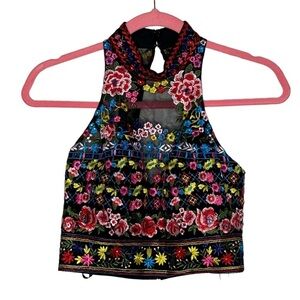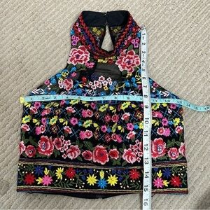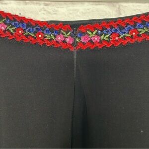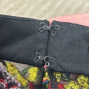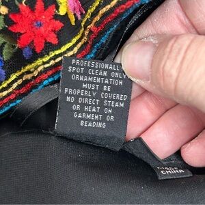 Color: Black and multicolored embroidered floral pattern