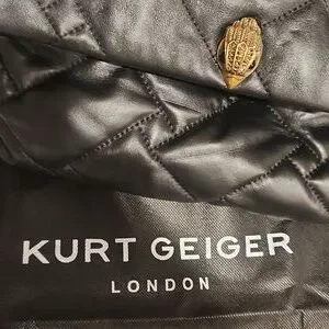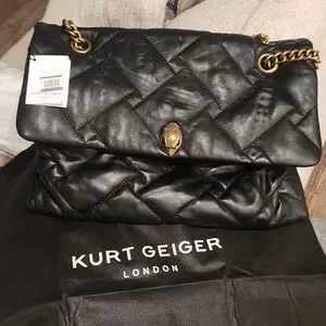 Elevate your style with the Kurt Geiger black quilted bag. Featuring a luxurious design and gold chain accents, this bag is perfect for any occasion. Soft, quilted leather is set off with a gilded pull-through chain strap and eagle-eyed clasp on an oversized bag perfect for days you want to be a little extra.