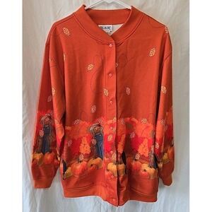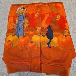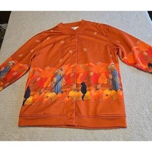VTG BLAIR Women's Scarecrow And Pumpkins Snap Up Sweatshirt Jacket size L Orange