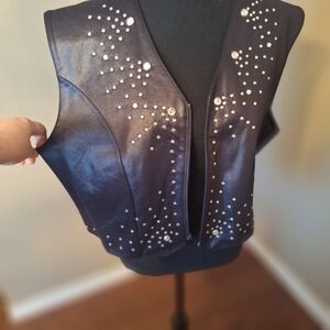 Stylish vintage 1849 Authentic Ranchwear black vest with studded gem design. Perfect for adding an edgy touch to any outfit! Very nice!