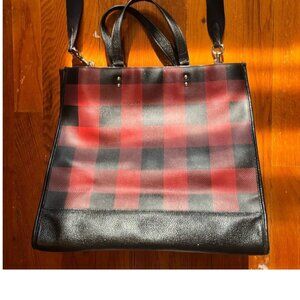 RED AND BLACK PLAID EXTRA LARGE TOTE BAG HAS FLAWS