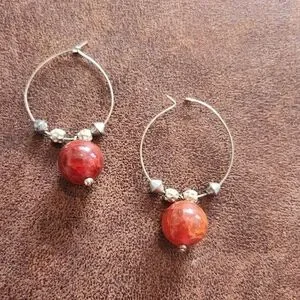 Gold Hoop Earrings With Coral Red Beads