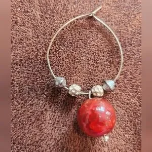 Add a touch of elegance with these stunning gold-tone and red hoop earrings. Medium-sized hoops include lightweight silver-toned beads and a large coral bead, featuring a kidney-wore closure. Perfect for any occasion.
