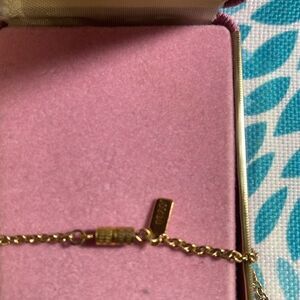 Filigree Design 8”length gold tone chain with screw type closure. pendant extended from chain 1 1/2 inches,NWOT in original jewelry case. Excellent condition.