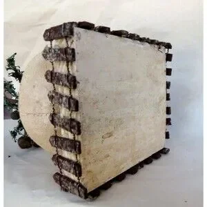 This Unbranded Primitive Snowman figurine with a Christmas tree on its head and an extra long nose is a charming addition to any holiday decor collection. Made from fabric and featuring bells on its limbs, this rustic, country-style snowman exudes a seasonal theme that is both original and heartwarming.