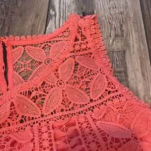 In beautiful condition as I. Relieve this was o my worn once. Freshly dry cleaned. PTP measures 18.5”. 32” inches from shoulder to hem in length. Lined and made from 100% polyester. Features intricate lace design.