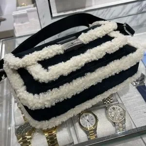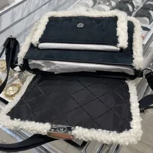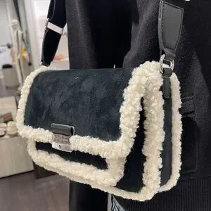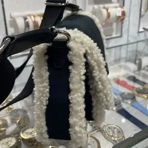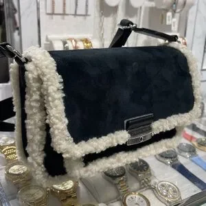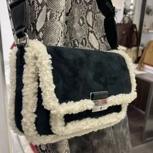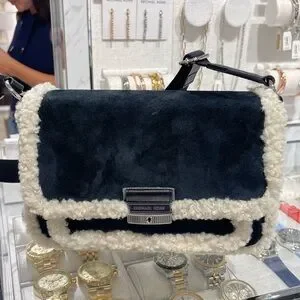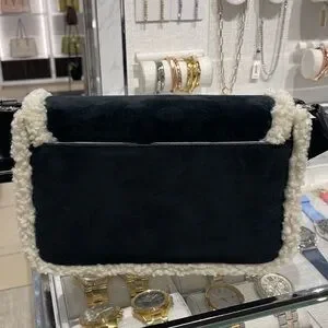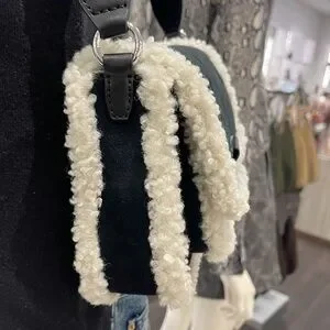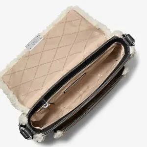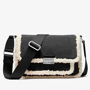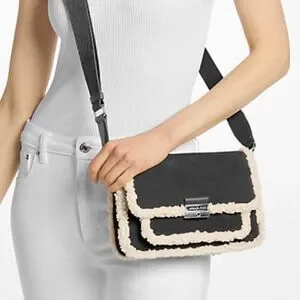 MICHAEL KORS Bradshaw Medium Suede and Faux Shearling Messenger Bag Black NWT