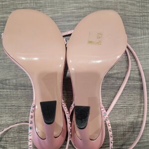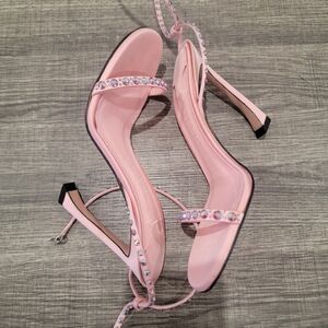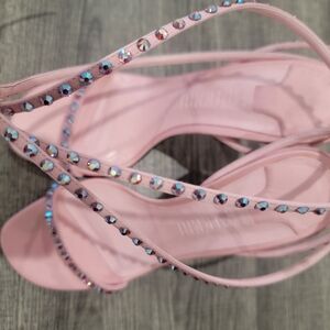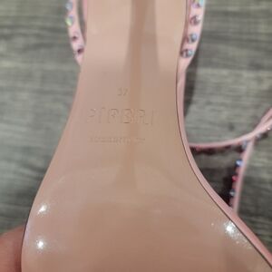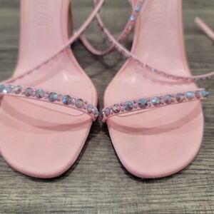 Piferi Satin Vegan Leather Ankle Wrap Stylish Pink Rhinestone Heels Size 37 Or 7