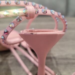 Add a touch of glamour with these stylish pink rhinestone heels. Perfect for elevating any outfit with a hint of sparkle.