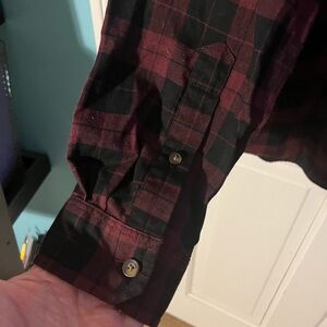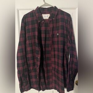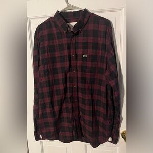Lacoste Men's Maroon and Black Plaid Button Shirt Size Large