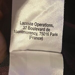Excellent preowned Lacoste men’s button shirt. In great condition, with no flaws that I could find. Nice rich maroon and black plaid, great for fall months! Casual or dressy. That great Lacoste designer logo and name! Men’s size large.