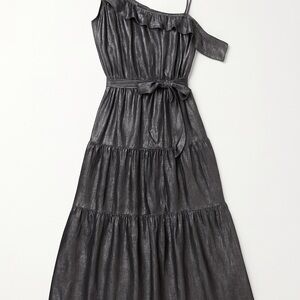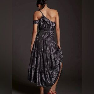Maeve Metallic Silver Black One Shoulder Tiered Midi Dress Size L Anthropologie