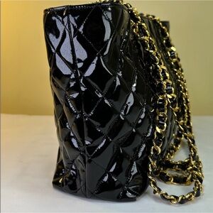 Sophisticated CHANEL patent leather,This bag is vintage and in great condition as you can see.the 24 kt gold plating is still amazingly shiny like new.Just an absolute beautiful bag.I have never seen anything so pretty.If you are a a Chanel girl or looking for your first stand out bag this is it..
