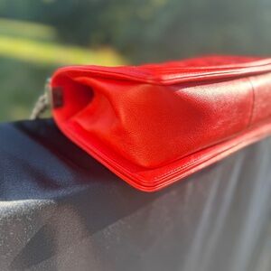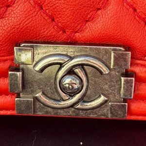 Make a bold statement with this Chanel Medium Elevate your collection with this Chanel Boy Bag in Fiery Red Caviar Leather, Medium Size, complete with original box, dust bag, and certificate of authenticity. Designed by Karl Lagerfeld, the Boy Bag has become an iconic symbol of modern Chanel — edgy yet timeless. Crafted from durable caviar leather with diamond quilting, finished in aged ruthenium hardware, and featuring the signature CC push-lock closure, this piece is equal parts bold statement and versatile everyday bag.