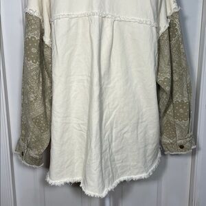 Oli & Hali Off White Olive Bandana Patchwork Shacket Medium Oversize Snap Jacket