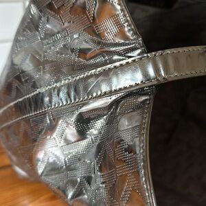 MICHAEL MICHAEL KORS Jet Set Signature Mirrored Metallic Pewter Tote Bag