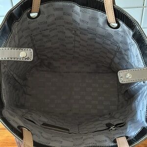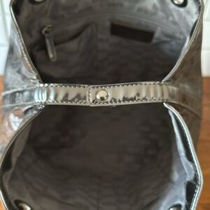 The Michael Michael Kors Jet Set Signature Mirrored Metallic Pewter Tote Bag is a standout accessory that combines functionality with a bold, luxe aesthetic. This tote features the brand’s signature MK logo embossed across its sleek, mirrored metallic pewter exterior, adding a modern twist to a classic design. The tote is equipped with a spacious interior, double leather shoulder straps, and silver-toned hardware accents for a polished look. The snap tabs on top sides allow it to look more like a bucket bag as pictured. While the interior is thoughtfully organized with multiple pockets to keep essentials in place.