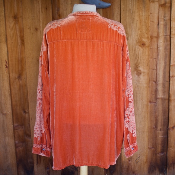 Johnny Was Pete & Greta Orange Velvet Embroidered Long Sleeve Blouse Size L