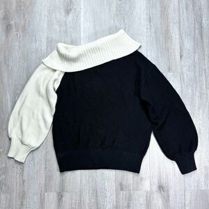 Size XS black and white color block sweater. Large cowl neck asymmetrically cut to drape off one shoulder. New with tags.