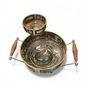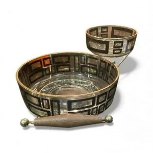 The bowls have a hexagonal base and feature a gold-toned geometric pattern.