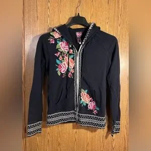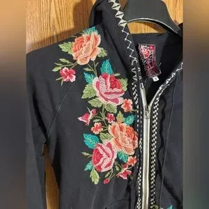 Johnny Was Dorana Embroidered Full Zip Floral Hoodie