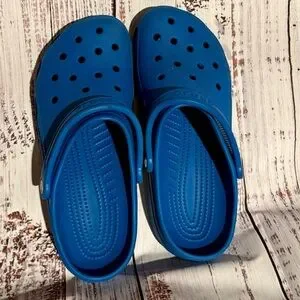 Stylish CROCS clogs in a striking blue. Comfortable and versatile. Like new condition!