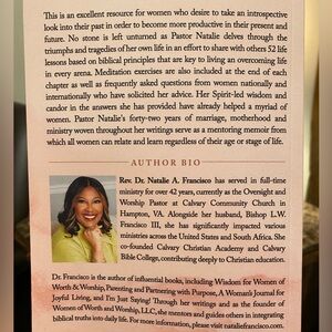 This is an excellent resource for women who desire to take an introspective look into their past in order to become more productive in their present and future. No stone is left unturned as Dr. Natalie delves through the triumphs and tragedies of her own life in an effort to share with others 52 life lessons based on biblical principles that are key to living an overcoming life in every arena. Meditation exercises are also included at the end of each chapter as well as frequently asked questions from women nationally and internationally who have solicited her advice. Her Spirit-led wisdom and candor in the answers she has provided have already helped a myriad of women. Dr. Natalie's forty-two years of marriage, motherhood and ministry woven throughout her writings serve as a mentoring memoir from which all women can relate and learn regardless of their age or stage of life. (First Printing by Saint Paul Press; Second Printing by McClendon Media Group, 244 pages).