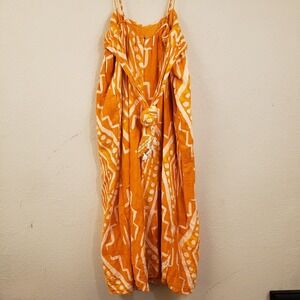 BNNT By Anthropologie Size 2 Orange Wide Leg Jumpsuit Batik Print Cropped Romper