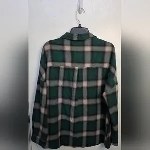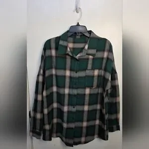 Add a touch of style to your wardrobe with this boutique brand green plaid, drop shoulder button-down shacket. Perfect for any casual occasion, it combines comfort with a classic look. Only worn a few times and is in great shape! Super cute for fall. Polyester/Cotton blend. See photos for more details.