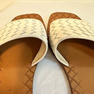 Bottega Veneta Women’s White Intrecciato Nappa Flat Sandals in size 36