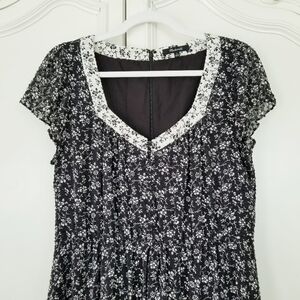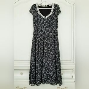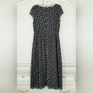 Madewell Black Branch Floral Swiss Dot Chiffon Short Sleeve Prairie Midi Dress 8