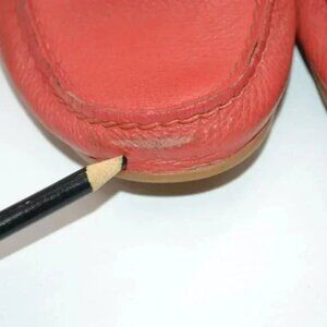 Offered is this darling vintage pair of COACH coral pink-orange pebbled leather super-soft genuine leather with soft rubber soles. The shoes are in gently pre-owned condition with average, moderate wear.