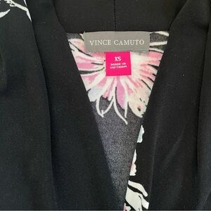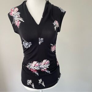 Vince Camuto Black Floral Ruched Stretch Top Sleeveless V-Neck Blouse Size XS