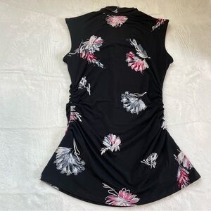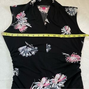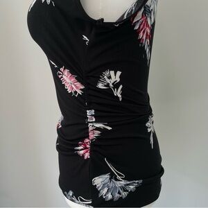 Vince Camuto Black Floral Ruched Stretch Top Sleeveless