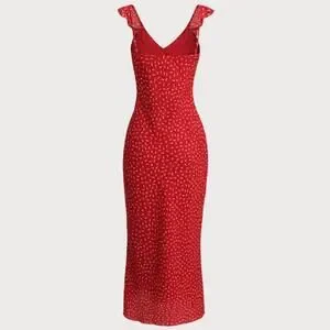 RIHOAS Red Floral V Neck Ruffle Maxi Dress XS