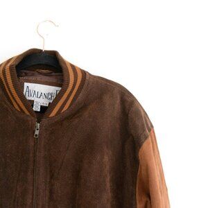 Vintage Avalanche Brown Tan 100% Suede Leather Lined ZipUp Bomber Varsity Jacket