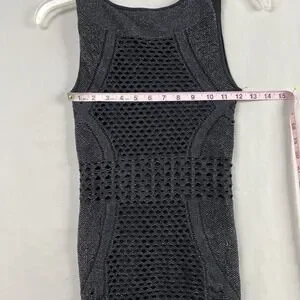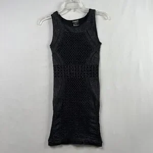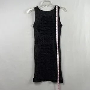 Vintage Y2k Bebe Mini Bodycon Dress Petite P/S Black Sexy Lace Stretch Metallic