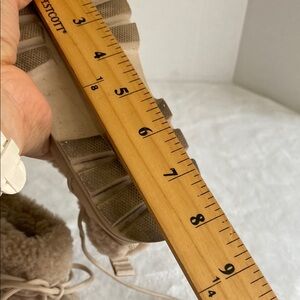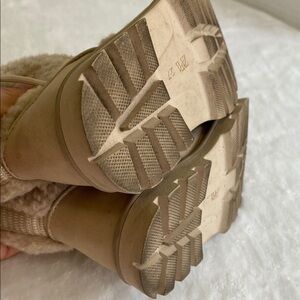 Warm and stylish tan shearling boots. Perfect for cold weather. They are in good condition. Review all photos before making a purchase.
