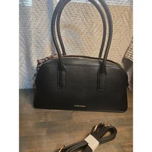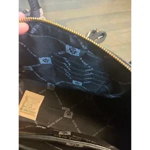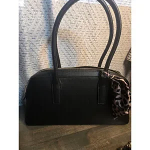 Women's Anne Klein Black Satchel Bag One Size Gold Hardware Leopard Scarf