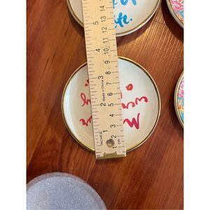 Set of 4 Lilly Pulitzer Ceramic Gold Rim Coasters 3.75" BREAKWATER BLUE LOLITA