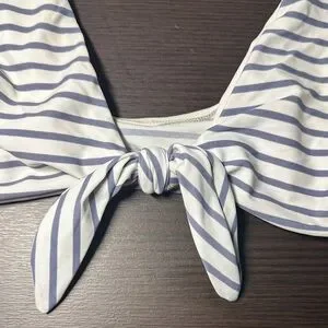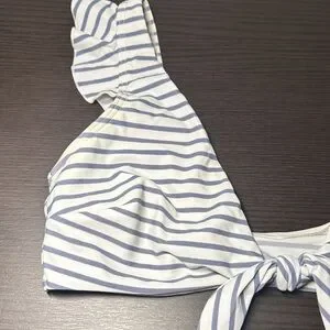 EUC COCOSHIP Grey and White Striped Top w/ Front-Tie Closure ๐