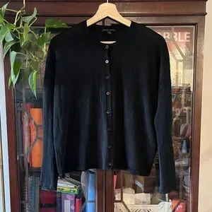 Like new Eileen Fisher lightweight organic linen organic cotton blend cardigan. Chic black cardigan with button-up design. Perfect for layering.