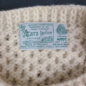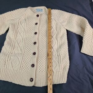 Vintage Irish Wool Hand Knit Womens S? Cable Fisherman Cardigan Ivory Ireland